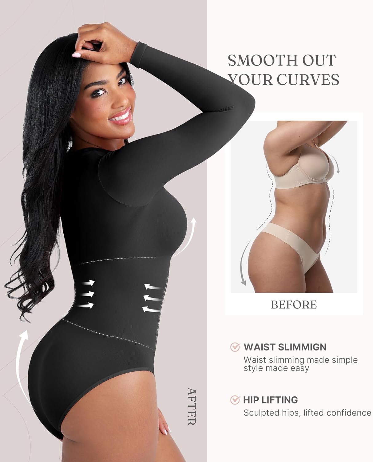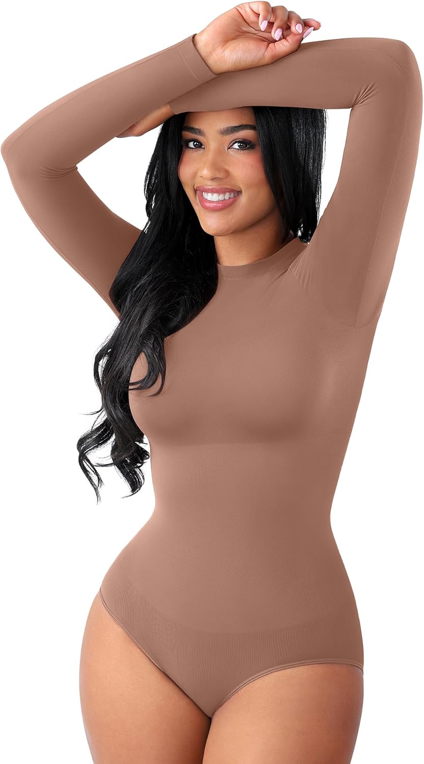FeelinGirl Lightweight Breathable Bodysuit No Wedgies Smooths Curves Body Suits Women’s Bodysuits Long Sleeve Body Suit