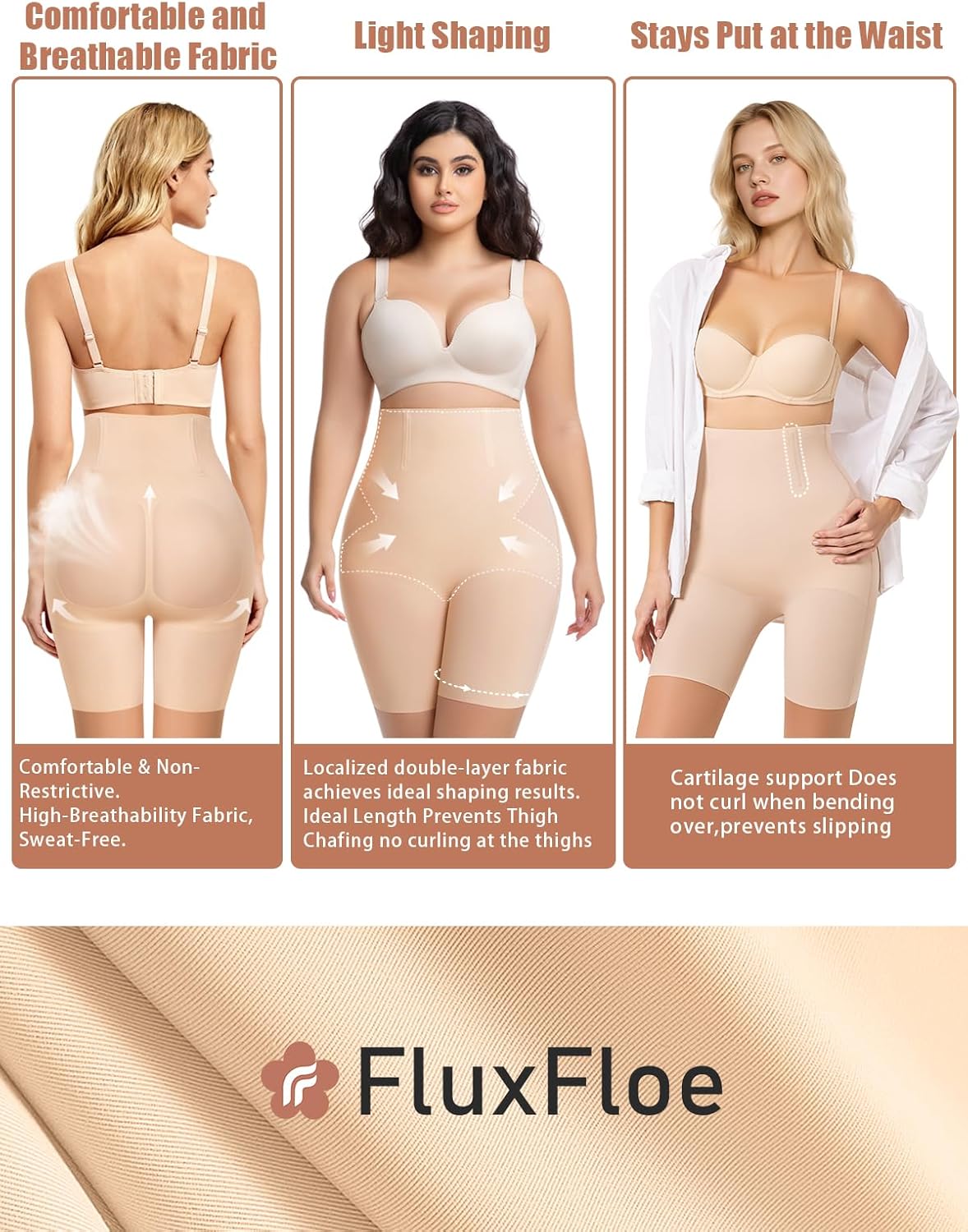 FluxFloe Shapewear for Women, Light Shaping Tummy Control High-Waisted ShortsSeamless, No-Roll Waist, Breathable