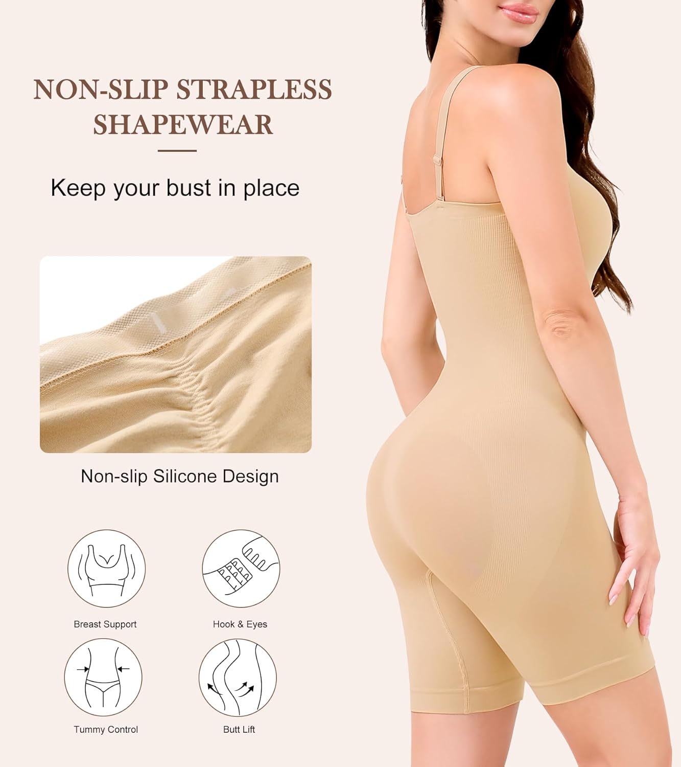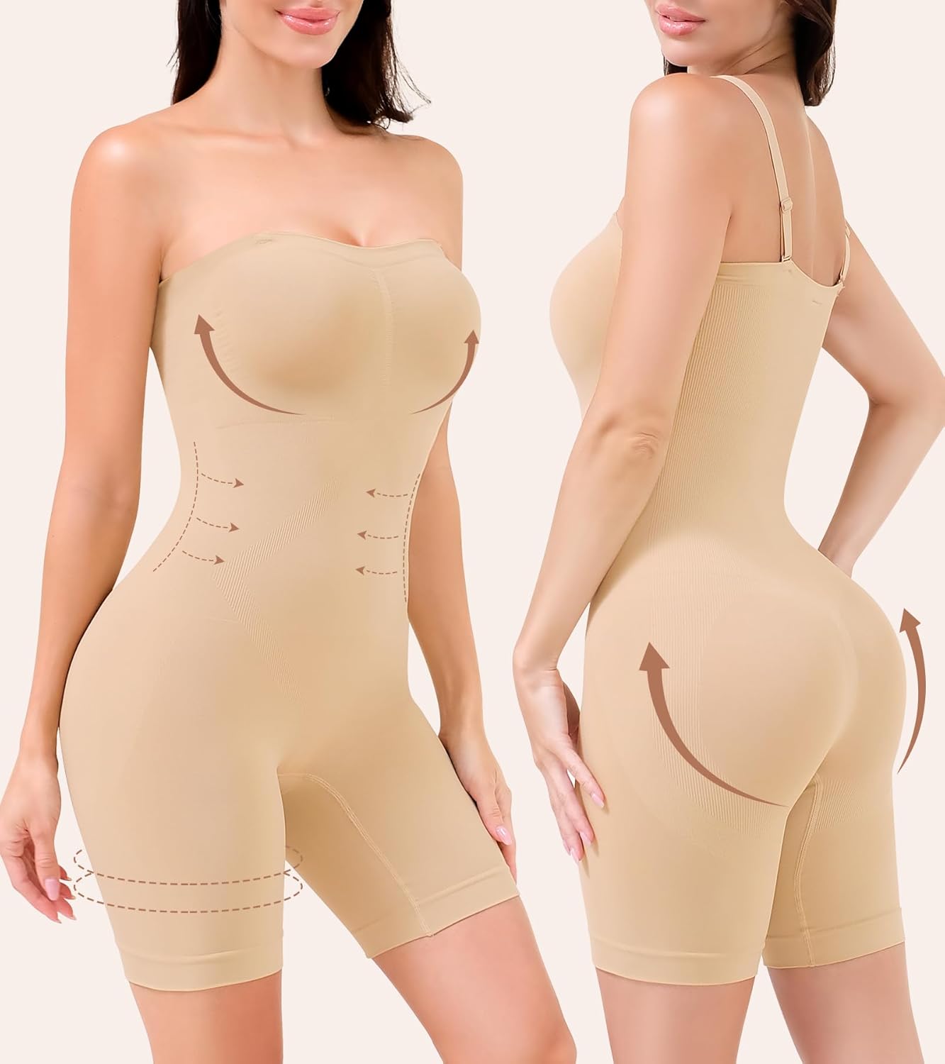 HEPOE Strapless Shapewear for Women, Full Shape Wear Tummy Control Bodysuit, Seamless Slimming Body Shaper