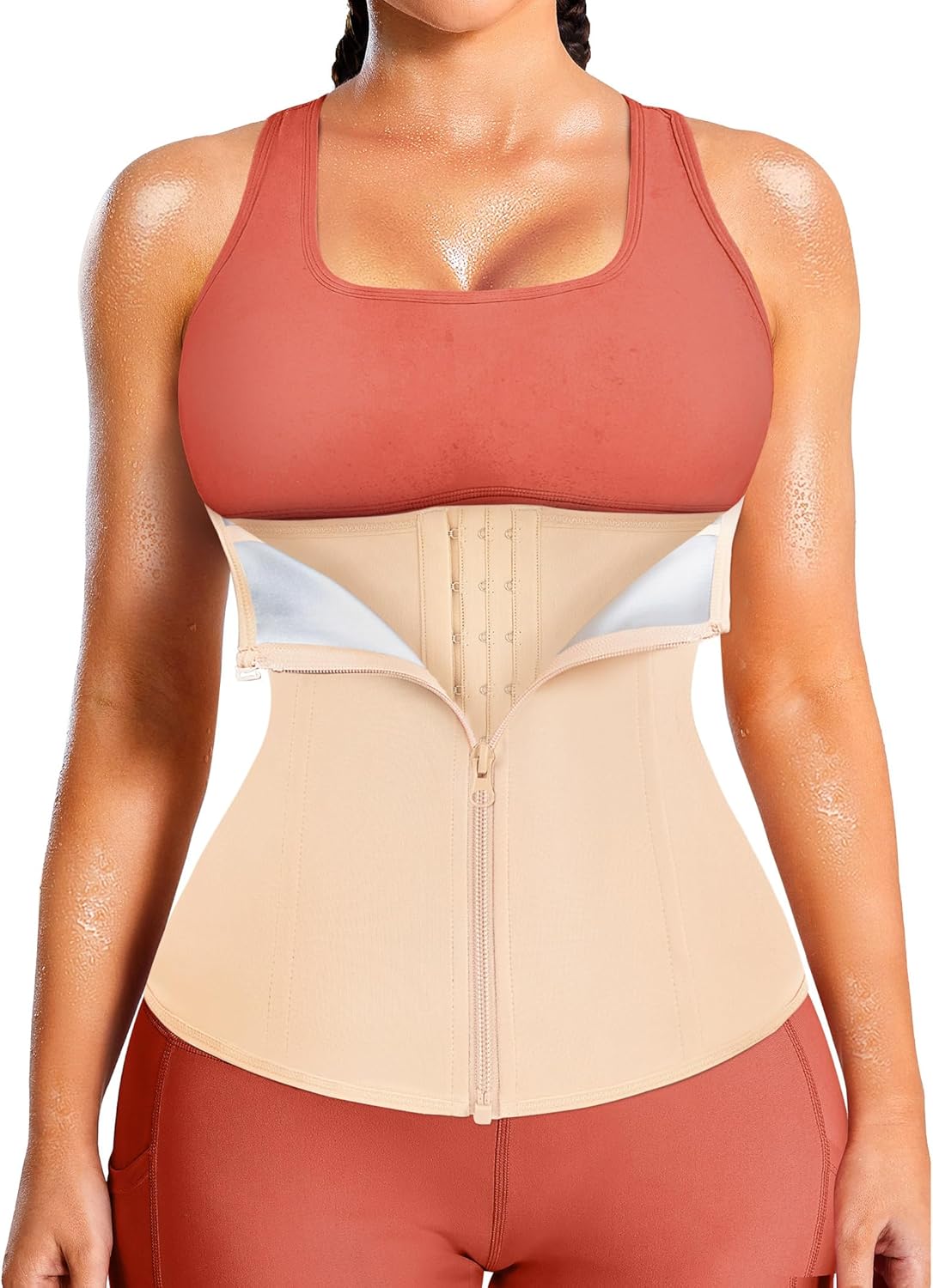 LEINIDINA Womens Waist Trainer Corset with Zipper Sweat Waist Trimmer for Women Workout Belt Corset Shapewear