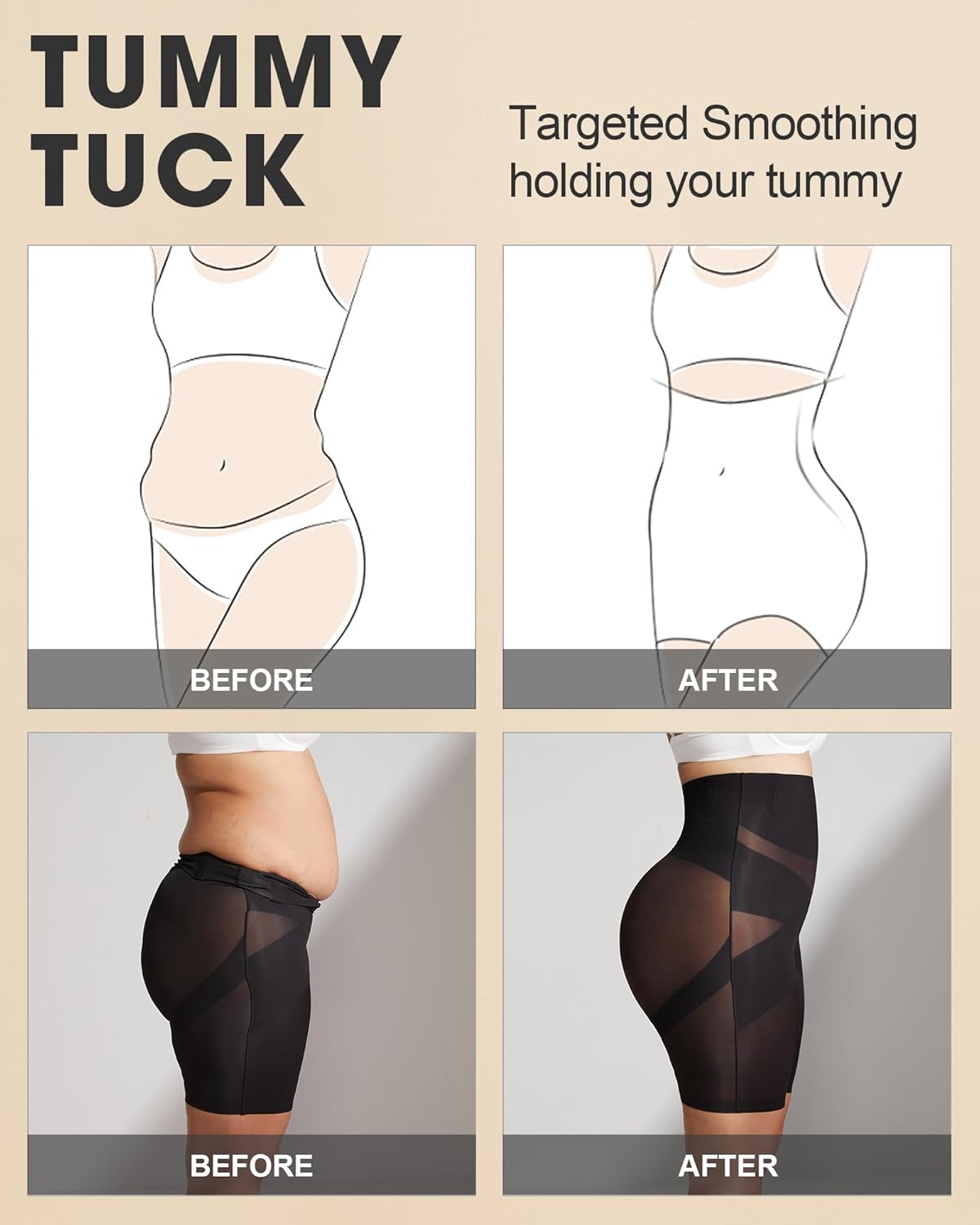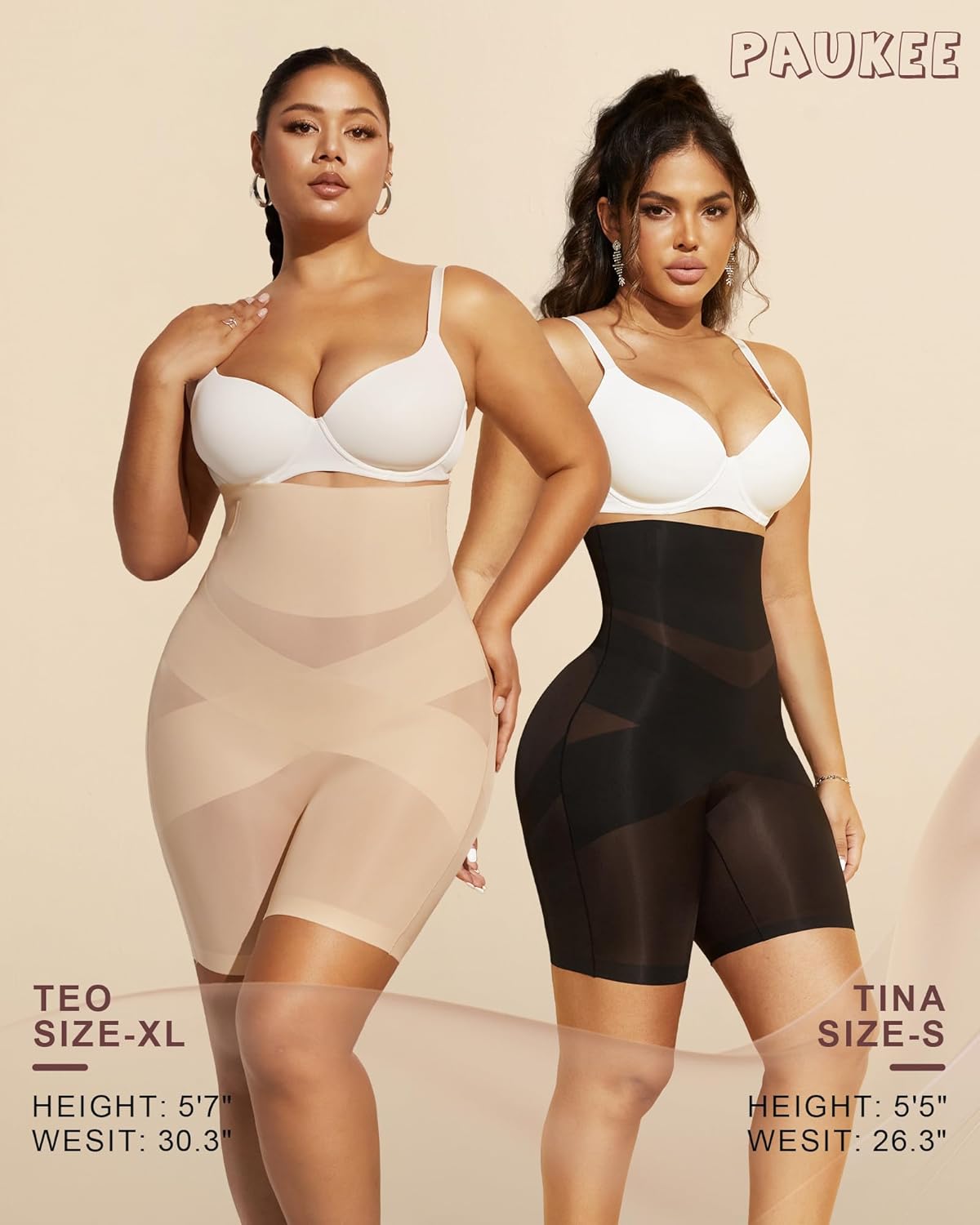 PAUKEE Tummy Control Shapewear Shorts for Women Butt Lifting Body Shaper Shorts High Waisted Seamless Girdles Under Dress