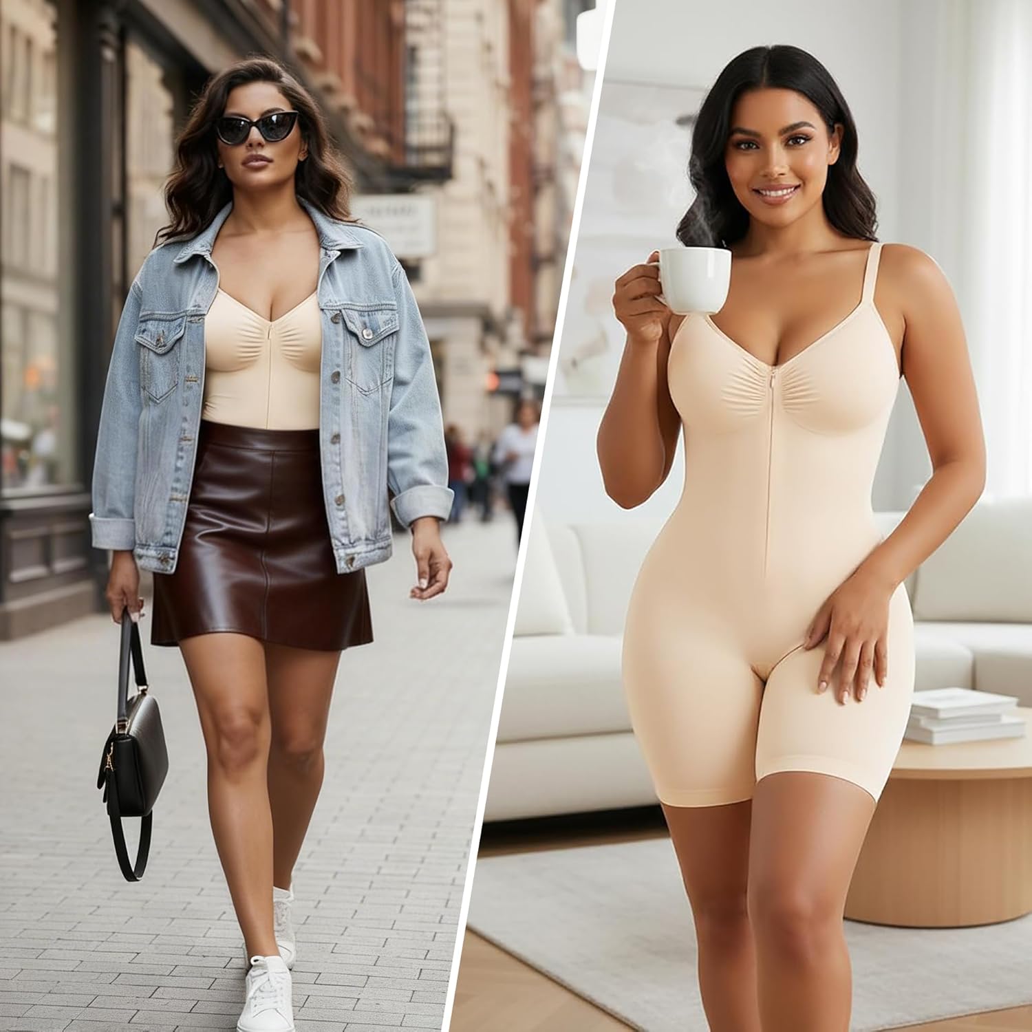 SHAPERX Women’s Shapewear Bodysuit Tummy Control Seamless Zip-Up Body Shaper Waist Snatched Body Suit
